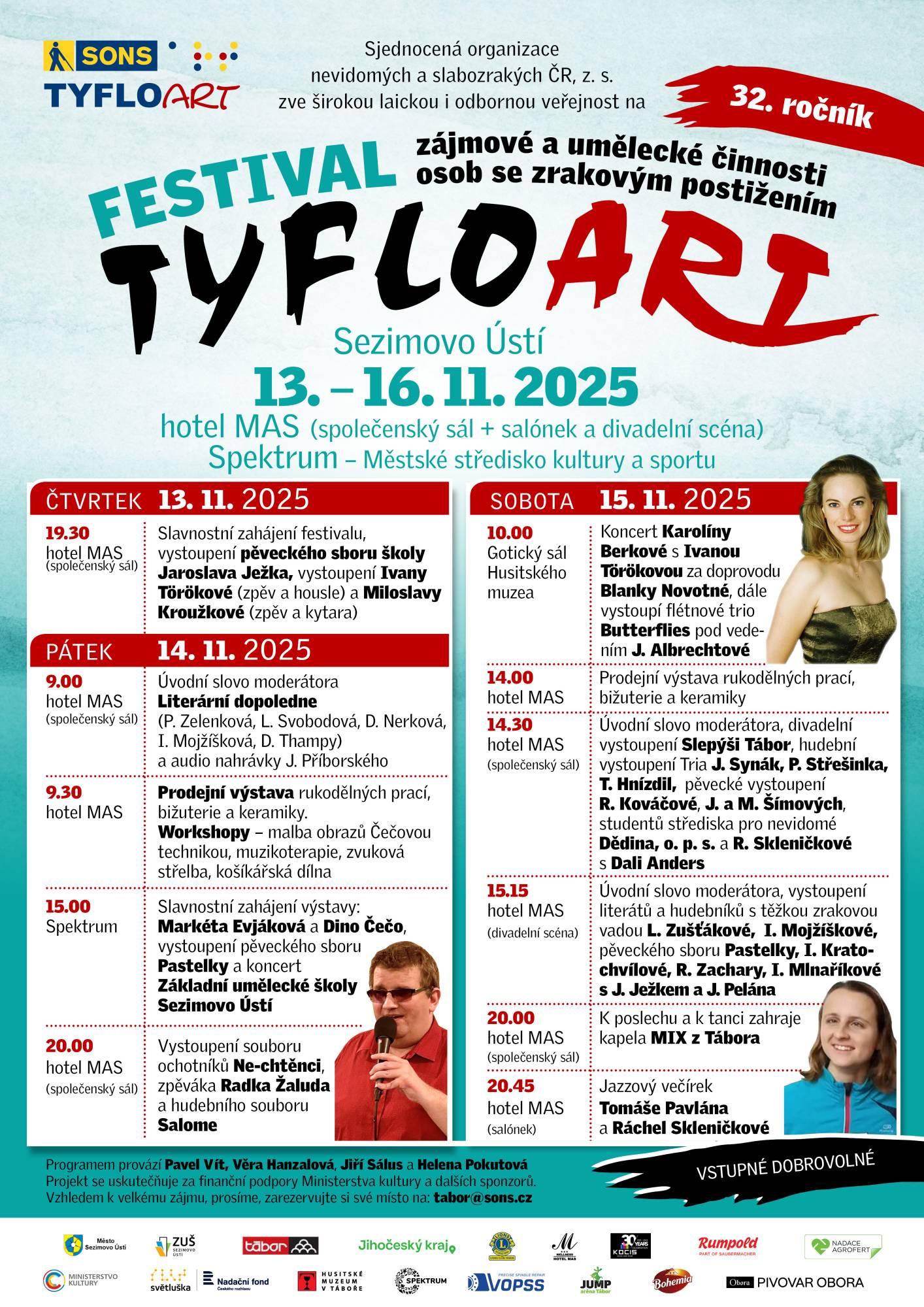 V pátek 14. 11. 2025 od 16.00 vystoupí naši žáci v sále Spektra v Sezimově Ústí v rámci doprovodného programu festivalu zájmové umělecké činnosti nevidomých a slabozrakých TyfloArt . VSTUP VOLNÝ