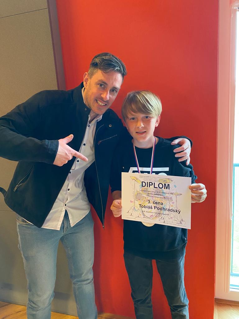 TOBIÁŠ PODHRADSKÝ ve stejné soutěži získal 3. MÍSTO v sólové hře na bicí soupravu! GRATULUJEME!!!